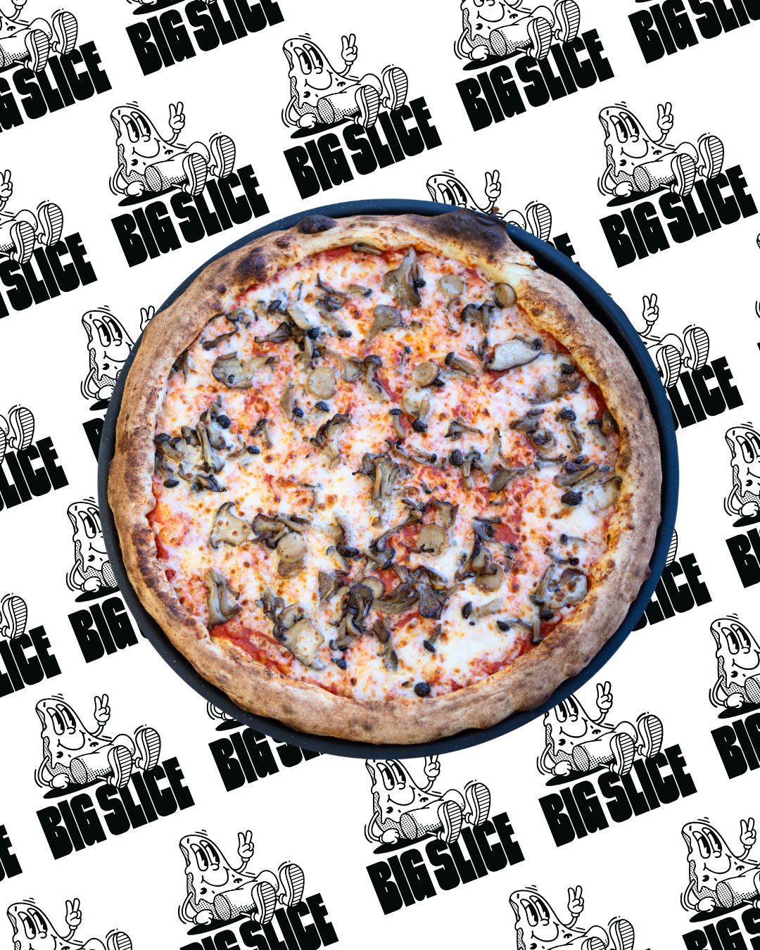 Huge 18″ Mushroom Pizza with mushrooms, garlic, olive oil and neapolitan sauce